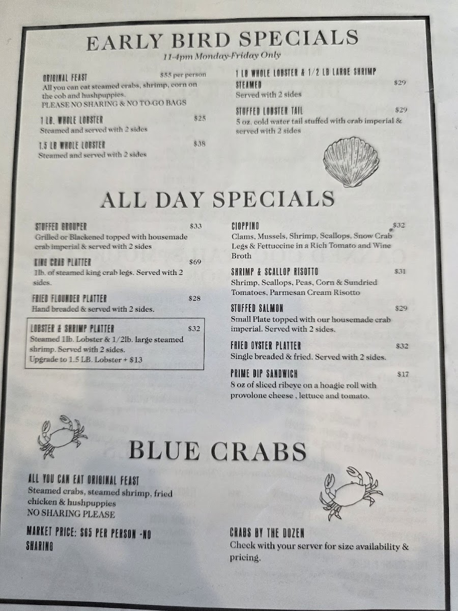 Customer reviews highlight the generous portions, fresh ingredients, and warm, attentive service. Diners often declare Waterman’s as the best seafood spot in Ocean City, leaving satisfied and eager to return. Experience the unique specialties and delightful atmosphere that make Waterman's Seafood a must-visit destination for both locals and tourists alike.
